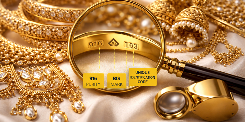 Verify All Components: Ensure that all the required elements of the hallmark are present—the BIS logo, purity grade, assaying center mark, jeweller’s identification, and HUID number.